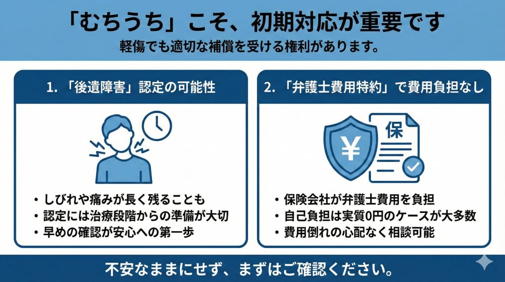 実は、「軽傷だと思っていた段階」こそ、弁護士のアドバイスが役に立つタイミングです。